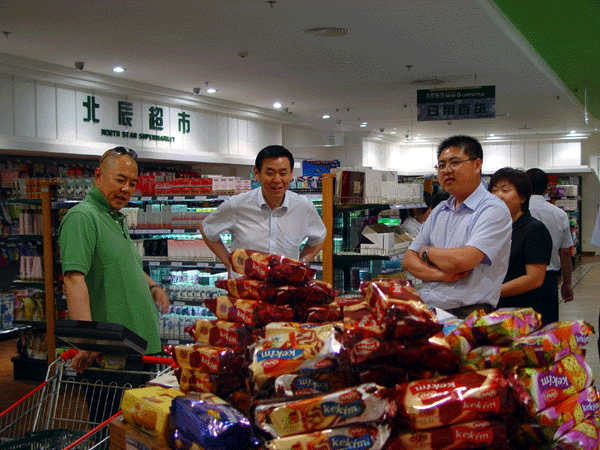 ??? 6月9日下昼,,,,,在多部影视剧中饰演皇上角色的著名演员张铁林惠顾MS88明升时代生涯广场店。。。。。“皇上”张铁林在采购一样平常生涯用品时与正在举行寻店事情的超市公司四位向导巧遇,,,,,双方举行了融洽的交流。。。。。公司向导向张铁林简朴的先容了时代大厦店超市的谋划理念以及商品结构。。。。。在英国生涯多年并已经加入英国国籍的张铁林先生听了先容后,,,,,也表达了自己的意见,,,,,他以为在京北地区有这样一家中高等超市很利便。。。。。他自己对超市的购物情形十分知足,,,,,并且自动提出要向他的圈内挚友先容这一购物的好行止。。。。。